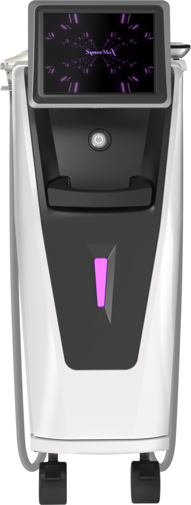 Synermax features ultrasound handpieces (3.0mm, 4.5mm, optional 9.0mm) and the Syner Handpiece, developed through ultrasound–shockwave integration, available in Small and optional Large sizes.