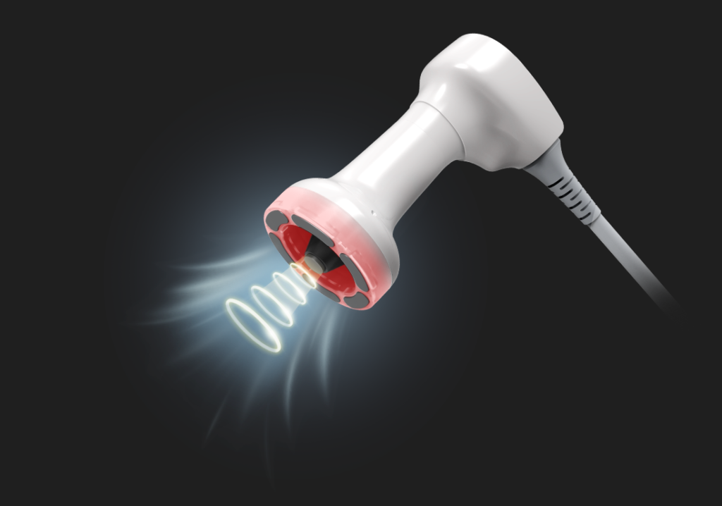 Extracorporeal shock wave and suction radio frequency in one handpiece.