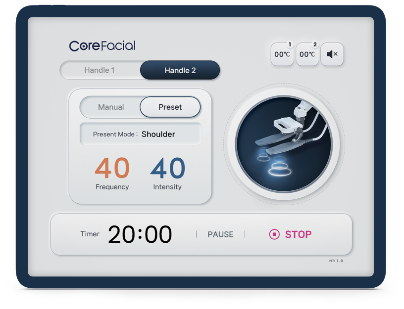 Users can easily select the desired treatment area, and parameters are saved for each mode,