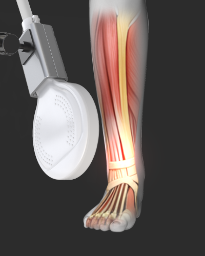 It delivers up to 5 Tesla of electromagnetic energy through a coil applicator (1–60 Hz), repeatedly stimulating muscles and relieving pain in the targeted area.